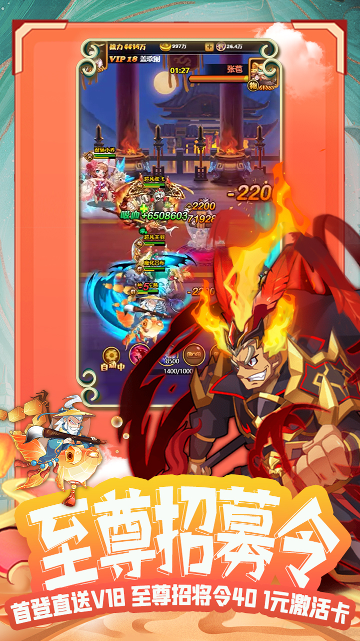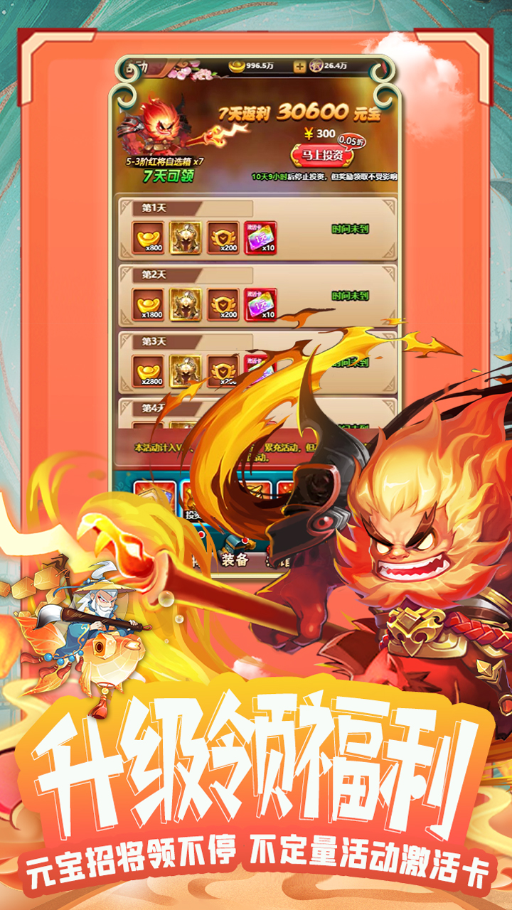 一款三國掛機SLG融合了多種玩法的遊戲。如SLG的攻城掠地,放置類的升級,BOSS挑戰,跨服國戰及休閒社交的偷菜,搶礦等玩法。核心系統有著良好的深度玩法和武將付費系統。遊戲美術以Q版三國為主,角色形象Q萌有趣,技能特效顯眼風趣,交互精良、簡潔合理。