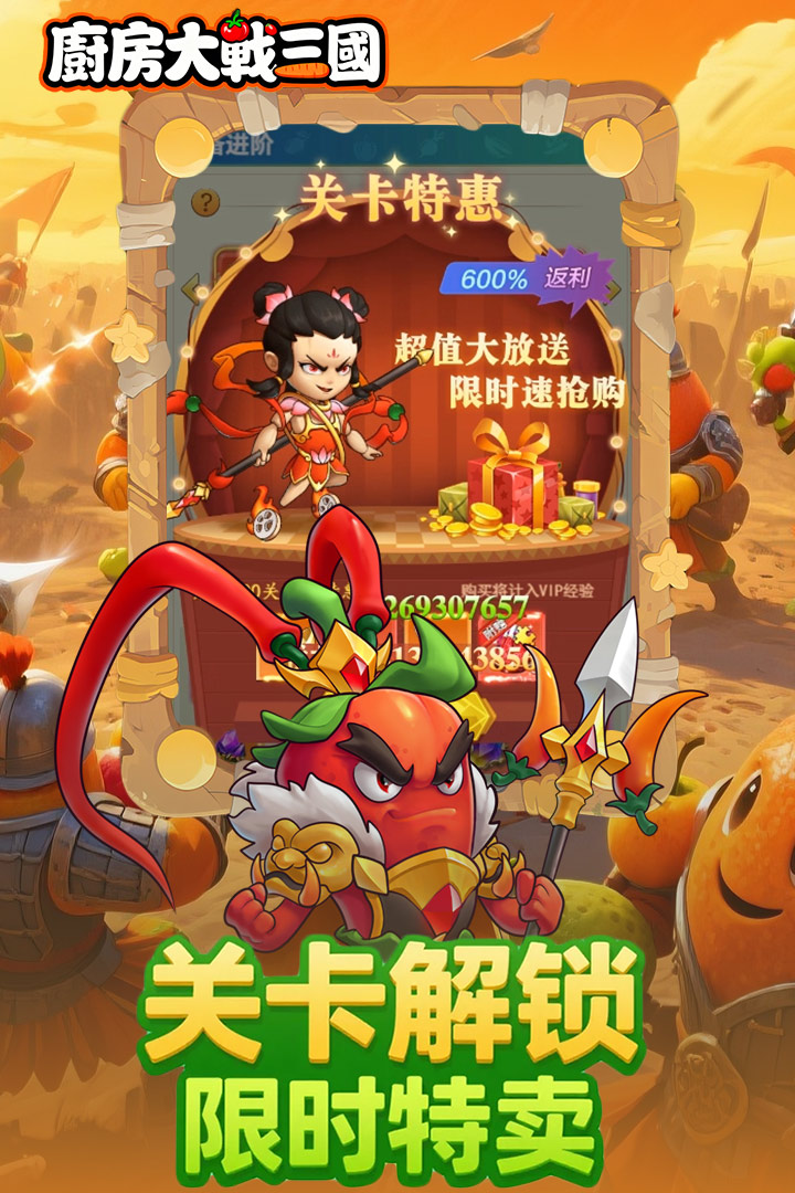《戰機奇緣》是一款以三國、神話、群星三大派系為背景的卡牌放置遊戲,遊戲最大的特點就是所有卡牌英雄都由各種食材化身,例如傳說中三國第一猛將呂布就被刻畫成火辣的辣椒,而齊天大聖孫悟空則被刻畫成香蕉,擁有雄才偉略的諸葛亮是舉著扇子的魷魚,搭配上遊戲輕鬆搞怪的畫風,讓你喜歡上這款遊戲!